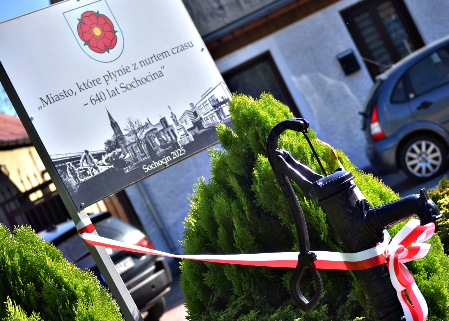 Po uroczystej mszy świętej w kościele parafialnym pod wezwaniem Św. Jana Chrzciciela w Sochocinie, w rynku miasta odsłonięta została pamiątkowa pompa oraz tablica. Odsłonili ją: burmistrz miasta i gminy Sochocin Jacek Podgórski, przewodniczący Rady Miejskiej w Sochocinie Dariusz Kujawski, Starosta Powiatu Płońskiego Artur Adamski, wicestarosta płoński Jacek Ryziński, proboszcz parafii w Sochocinie, ksiądz Czesław Stolarczyk oraz przedstawiciel marszałka województwa mazowieckiego Andrzej Różycki.